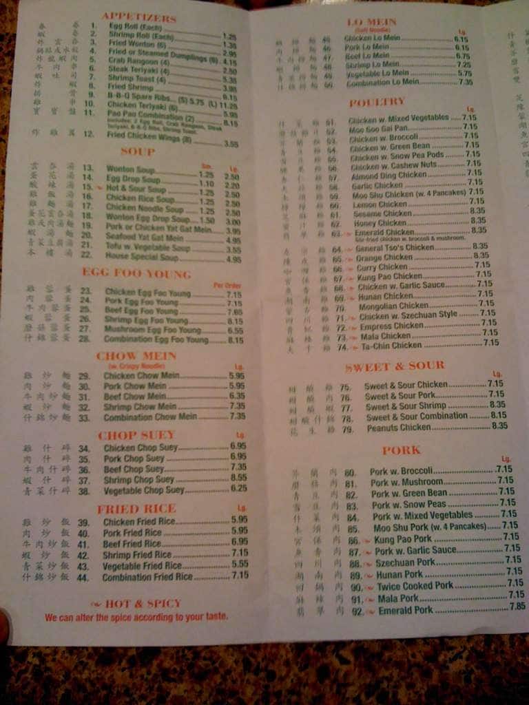 Hunan Palace Chinese Restaurant Menu In Papillion Nebraska Usa